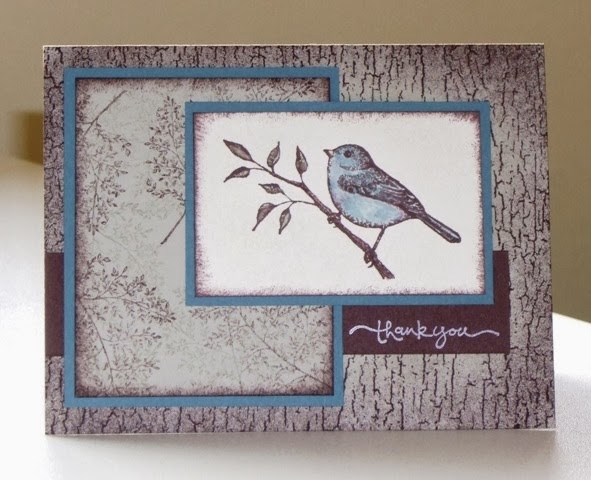 And apparently I really liked using Touch of Nature with Weathered, 'cause here's a third bird. Sentiment on this one is from All-Year Cheer III, and the harlequin is Print Pattern.