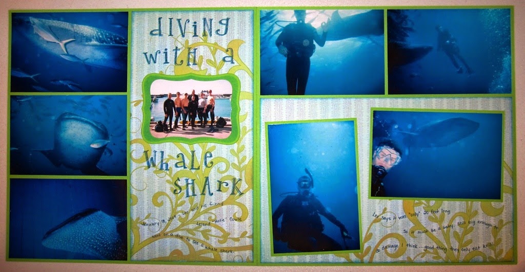 Here's a layout from Okinawa, when the hubs took a cheapo underwater camera with him on a scuba diving trip to see whale sharks.