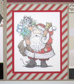 This particular Santa has been retired for *ages* but I love him. I stamped him with Basic Black and then colored with Prismacolor pencils.