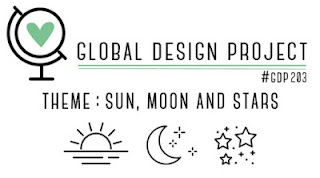 I, uh, more or less permanently "borrowed" the long-retired stamp set Stardust from my mom some years ago, but I think this is the first time I've inked it up. (She can have it back along with the other two stamp sets I liberated from her collection if she wants them, but she hasn't done any paper-crafting in several years so I don't think I need to worry about sending these back any time soon.) I was inspired to dust off this set (seriously, the stamps--still on wood blocks--say 2004 on them!) due to the Global Design Project theme challenge: