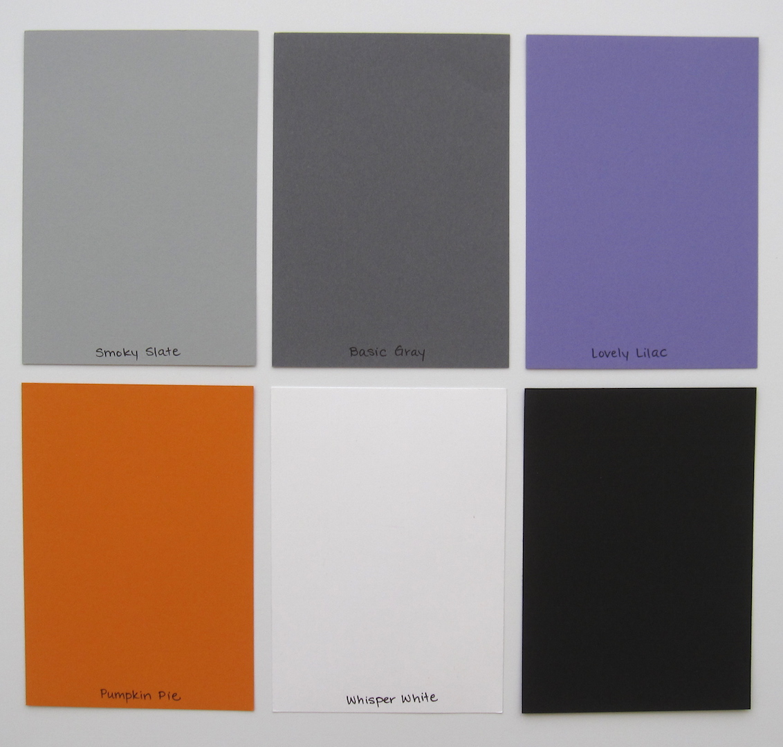 The patterned paper isn't SU!, but I put down the colors that it corresponds with and came up with a color combination of Smoky Slate, Basic Gray, Lovely Lilac, Pumpkin Pie, Whisper White, and Basic Black.